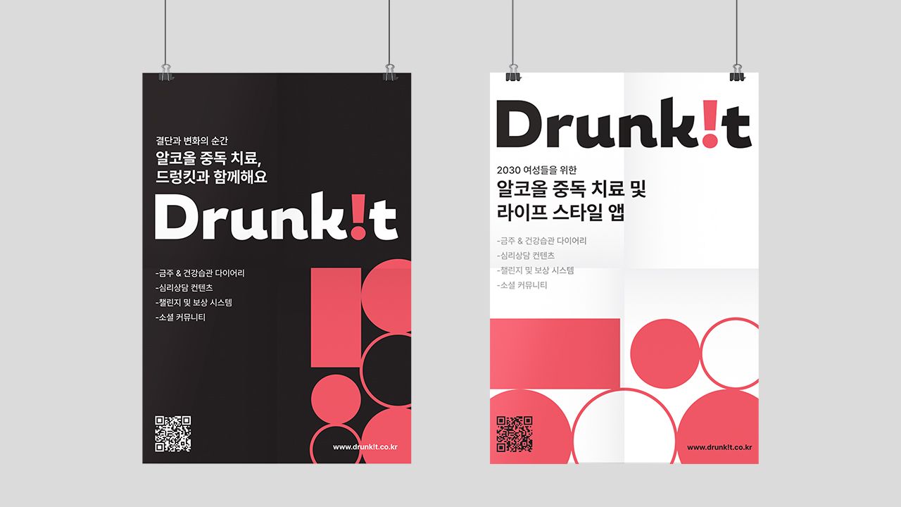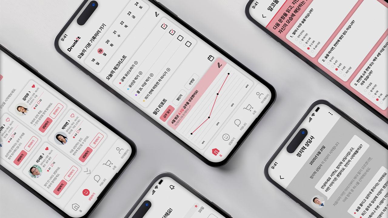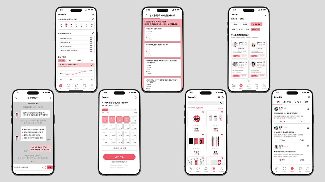 알코올 중독 치료 및 라이프스타일 개선 앱 서비스우리 모두가 일상에서 마주하는 술의 유혹, 그 유혹을 끊는다는 단순하지만 강력한 메세지를 담았다. 빠르게 증가하고 있는 20·30대 여성의 알코올 의존 문제를 예방하고 치료하기 위해 문제인식을 직시하고, 상담과 개선 프로그램을 제공하여 올바른 음주문화를 조성한다.