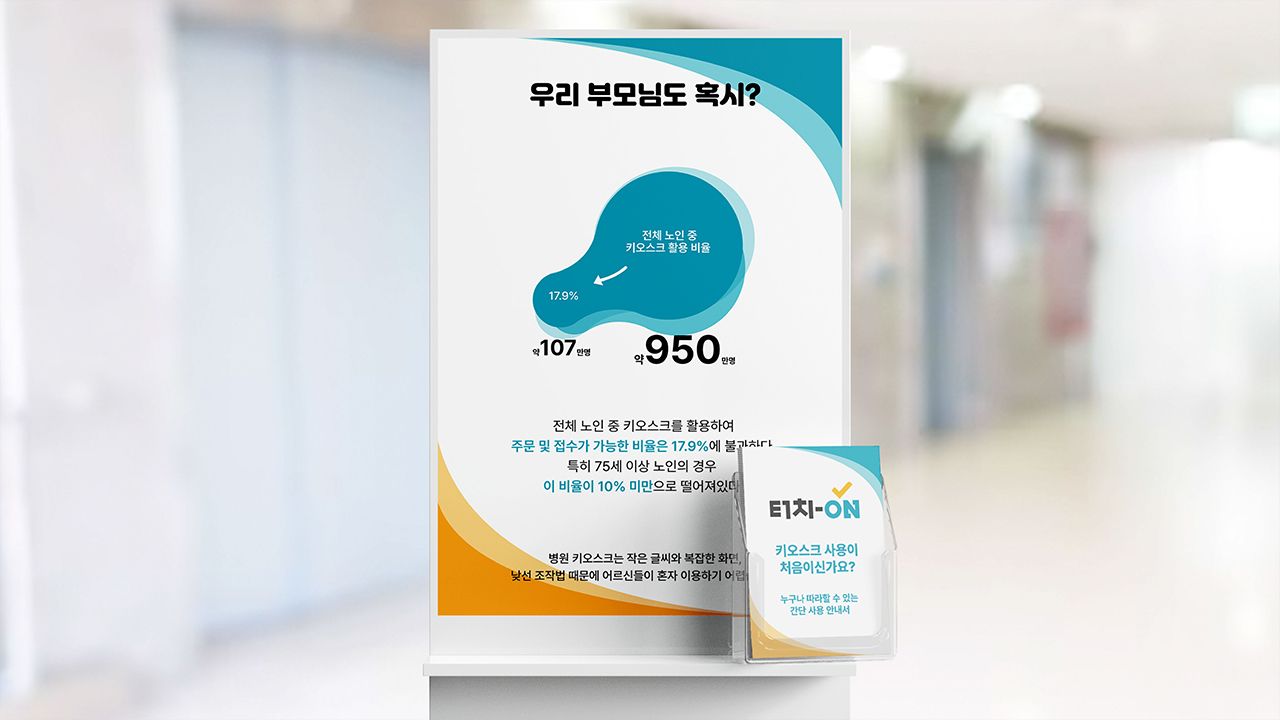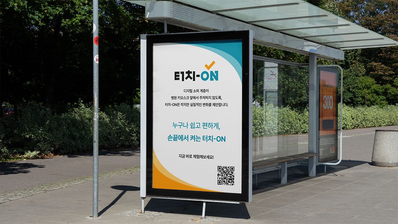작은 터치로 전하는 실질적인 도움터치 - ON은 병원 내 디지털 기기 사용에 어려움을 느끼는 디지털 취약 계층을 위한 사용자 중심 보조 시스템이다. 병원 키오스크는 복잡한 절차와 낯선 인터페이스로 인해 사용자 혼란과 불안감을 유발한다는 문제점이 있었다. 이러한 문제를 해결하기 위해 명확한 시각정보, 음성 안내, 직관적인 버튼 구조를 통합하여 누구나 스스로 병원 업무를 처리 할 수 있도록 돕는 서비스를 제공한다.