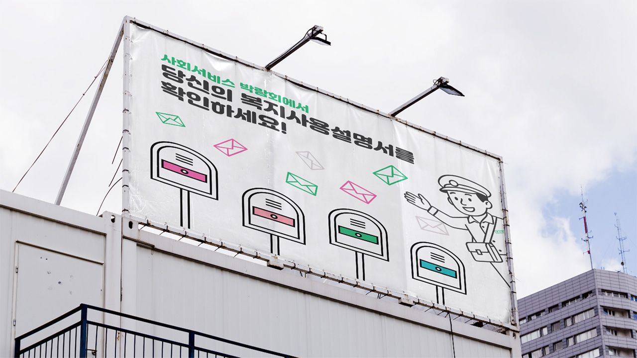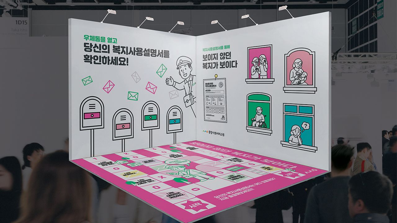 사회서비스의 인식 제고와 박람회 방문을 유도하기 위해 복지에 쉽게 입문할 수 있는 타겟별 맞춤 "복지사용설명서"를 제안하였다. "보이지 않던 복지가 보이다."라는 슬로건 아래 복지사용설명서를 시작으로 부스, 카드뉴스, 리플릿 등을 제작하였고 모두가 복지를 이해할 수 있도록 명확하고 간결하게 디자인하였다.