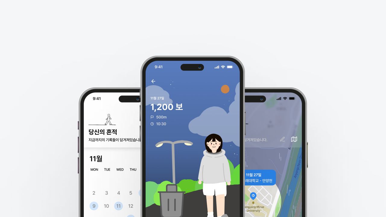 는 플로깅과 산책을 결합해 누구나 쉽고 즐겁게 장마철 사고를 예방할 수 있도록 기획한 라이프스타일 앱이다. 사용자는 플로깅 활동을 기록하고, AI 산책 코스 추천과 인기 코스 기능을 통해 자신에게 맞는 경로를 탐색할 수 있다. 커뮤니티 서비스를 통해 이웃과 다양한 사람들과 소통하며 함께 플로깅하는 경험을 제공한다.