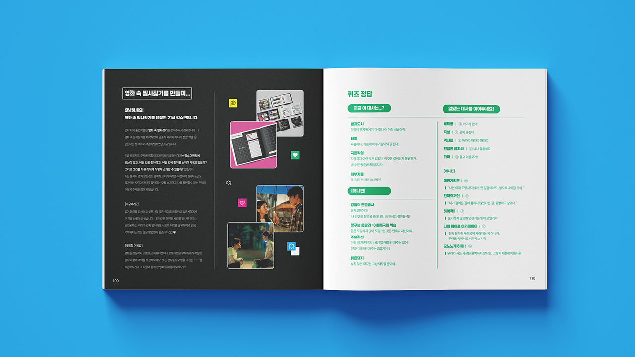 영화 속 명대사와 나만의 필사문장을 기록하는 필사책"기억에 남는 명대사가 있으신가요?"