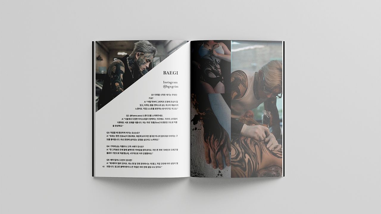 To Ink는, 타투의 대한 전반적인 역사와 타투의 대한 동서양의 인식, 도구, 종류, 타투이스트 인터뷰 등을 아트북 형식으로 다양