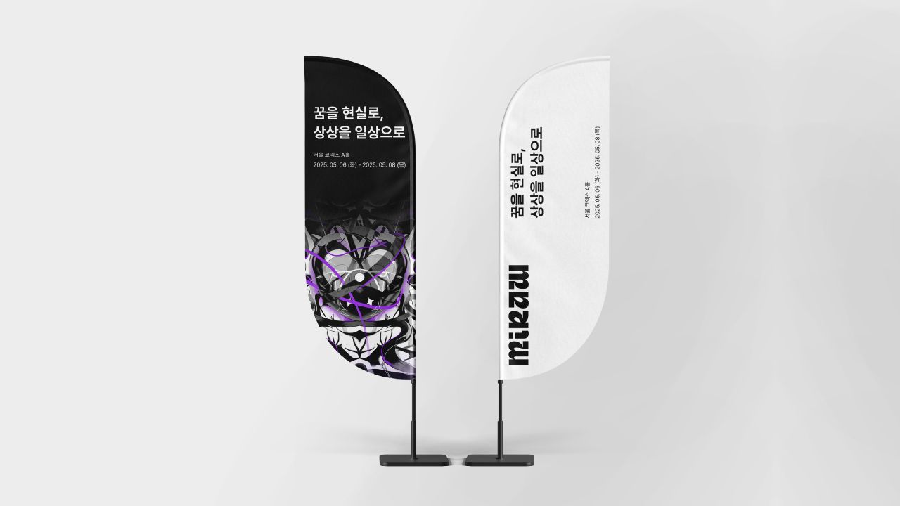 신기루를 뜻하는 Mirage와 그린다는 의미의 Draw를 융합한 조어인 MIRAW는 현실과 환상의 경계에 존재하는 세계를 시각적으로 구현하는 일러스트 중심 그래픽 스튜디오의 이름이다. MIRAW의 작업은 공상, 감각, 현실이라는 세 가지 개념을 축으로 확장되며, 추상적이고 초현실적인 형상 안에서 낯선 시각적 경험을 설계하고, 정교한 디테일과 강렬한 조형 감각을 통해 관람자로 하여금 환상의 세계를 몰입적으로 감각하게 한다.