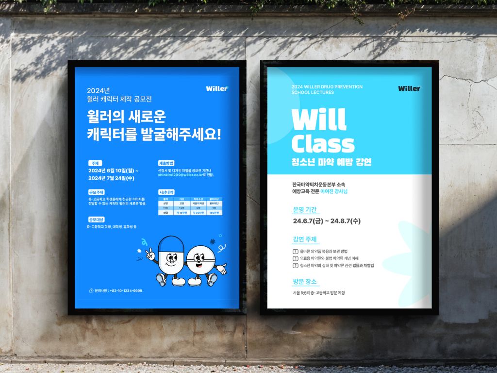 함께라면 할 수 있어 (You Will, We Will)윌러는 청소년을 위한 마약 예방 앱 서비스로, Will (의지와 결단력)이라는 단어에서 유래되었다. 마약에 노출되기 쉬운 청소년들에게 그 위험성을 알리고 경각심을 높이기 위해 기획된 이 애플리케이션은, 마약 예방 캠페인과 치료 연계 서비스를 제공하여 청소년들이 실질적인 도움을 받을 수 있도록 지원하는 것을 목표로 한다. 이를 통해 윌러는 제30회 커뮤니케이션디자인 국제공모전과 시각디자인과 주문식교육 경진대회에서 우수상을 수상하며, 청소년 대상 앱 서비스 기획력의 우수성을 인정받았다.