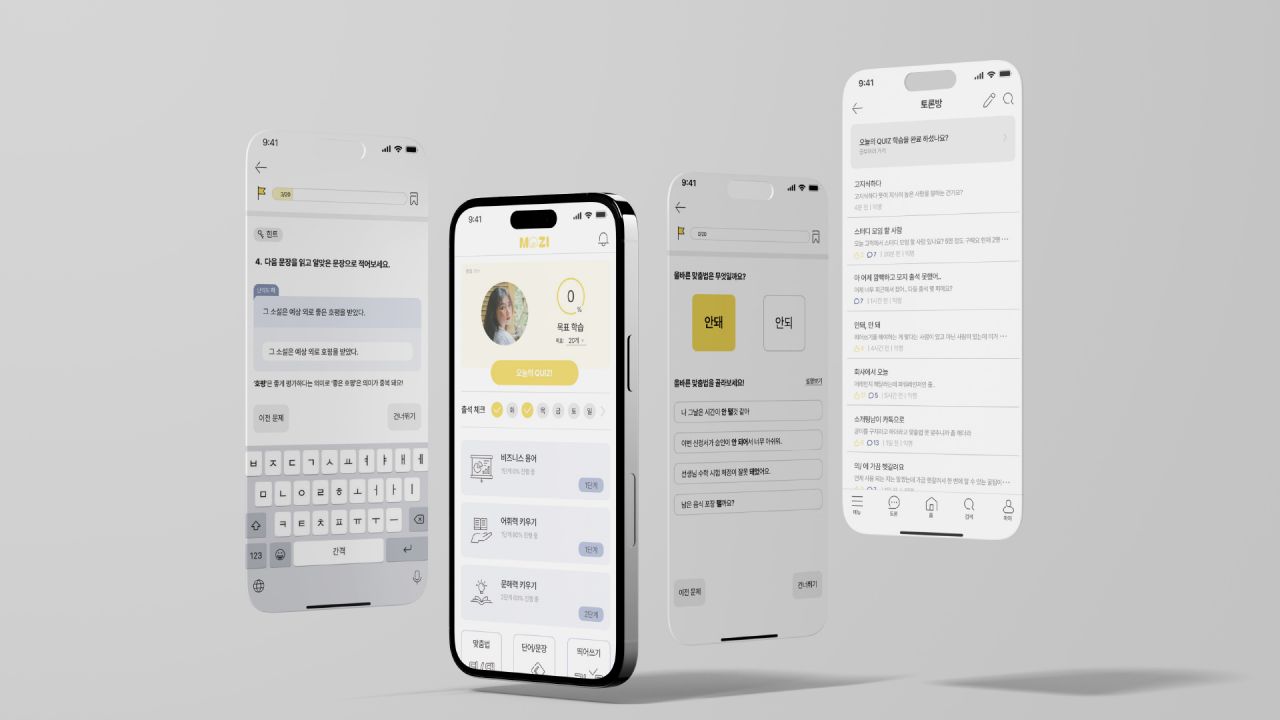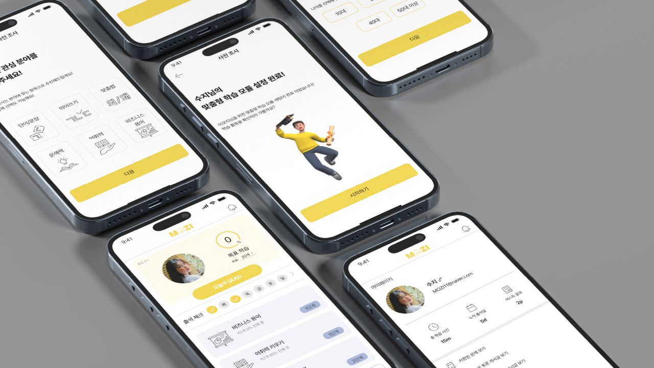 MOZI는 문해력 저하 이슈 해결을 위한 모바일 학습 플랫폼이다. 공부가 즐거운 사람부터 지루한 사람들까지 사용자 니즈에 맞춘 여러가지 학습 방법을 제공한다. 문해력 뿐만 아닌 어휘력, 맞춤법, 띄어쓰기, 비즈니스 용어 등 사용자가 필요한 분야를 자유롭게 선택하여 학습이 가능하며, 사전이 연동된 검색 기능과 커뮤니티 서비스를 제공한다.