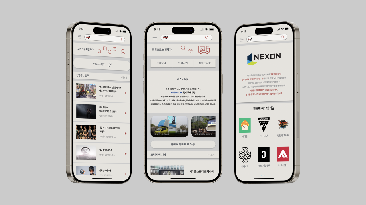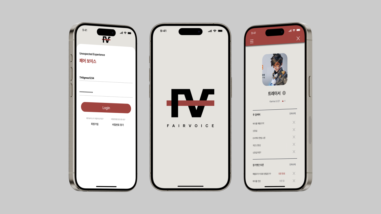 게이머들이 더 이상 게임사의 행간에 휘둘리지 않기 위한 커뮤니티FairVoice는 불공정한 게임 시스템에 맞서 유저들이 목소리를 내고, 공정성을 지킬 수 있도록 돕는 커뮤니티 플랫폼이다. 유저들은 확률형 아이템 데이터를 공유하고, 실시간 토론을 통해 문제를 논의할 수 있으며, 만약 게임사가 유저들의 말을 안 듣는다면 트럭 시위를 보낼 수도 있는 기능도 있다. 투명성과 공정성을 핵심 가치로 삼아 더 나은 게임 문화를 만들어가는 유저 중심의 커뮤니티이다.