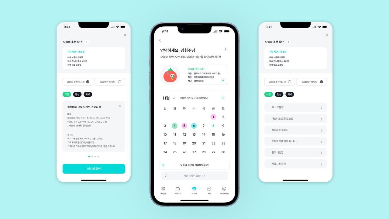 매일 업데이트되는 레시피로 식단을 관리하고 커뮤니티와 채팅 기능을 통한 정보 공유로 활발한 소통 환경을 제공하며 이달의 목표를 설정하고 달성해 비건 Level을 높임으로써 동기부여를 얻을 수 있다.