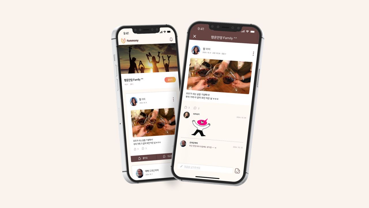 Fammony는 가족 간의 화합과 소통을 목표로 한 커뮤니티 서비스로 "Family"와 "Harmony"의 결합을 상징한다. 바쁜 일상에서도 서로의 소식을 쉽게 공유하고, 관계를 돈독히 할 수 있도록 돕는다. 가족들과 같이 씨앗을 모아 식물을 키우는 "그린 하모니" 기능을 통해 함께 성장하는 경험을 느낄 수 있게 하였다.
