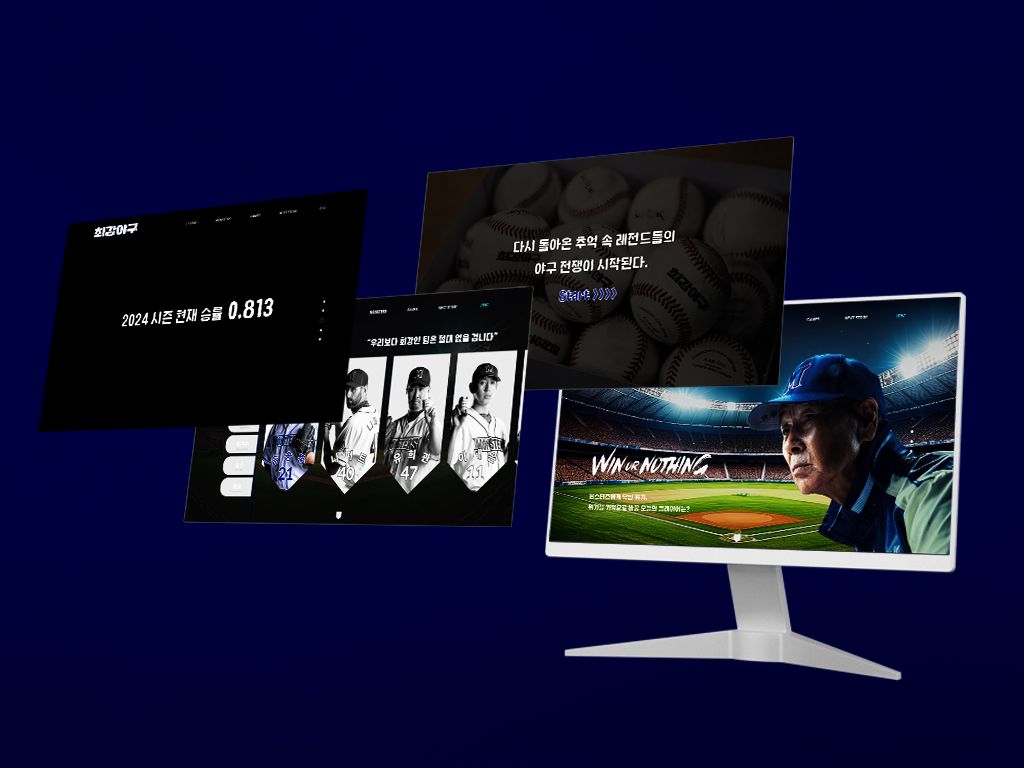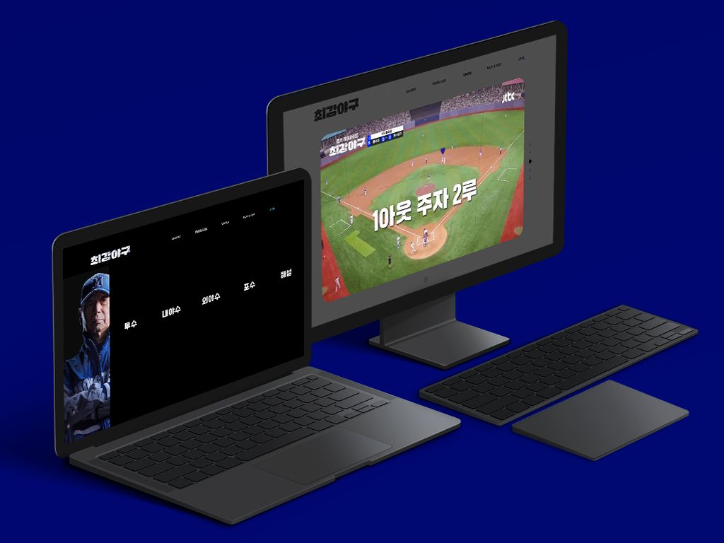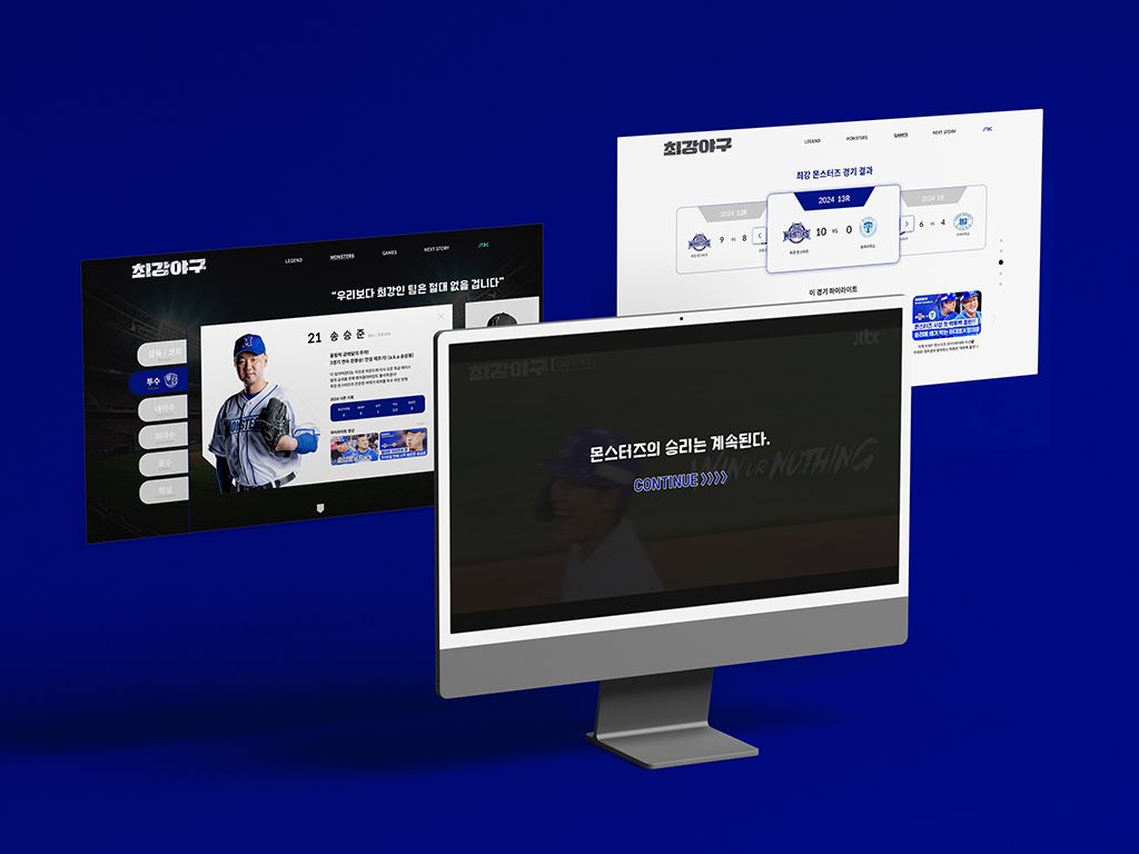 JTBC 최강야구 홍보와 시청 유인을 위한 마이크로 사이트최강야구를 통해 더 많은 시청자들이 JTBC 예능에 관심을 가지고 시청하도록 유도 하고자 본 마이크로 사이트를 제작하였다. 본 서비스는 최강 몬스터즈 선수 정보, 경기 기록과 하이라이트, 예고편 등 최강야구만이 가지고 있는 다양한 정보들을 제공하고 사용자들이 직접 인터랙션을 통해 경험하며 느낄 수 있도록 의도하였다. 직관적인 인터페이스와 시각적으로 매력적인 디자인으로, 사용자들이 쉽게 정보를 찾고 즐기며 흥미를 느끼고 관심을 끌 수 있게 제작하였다.