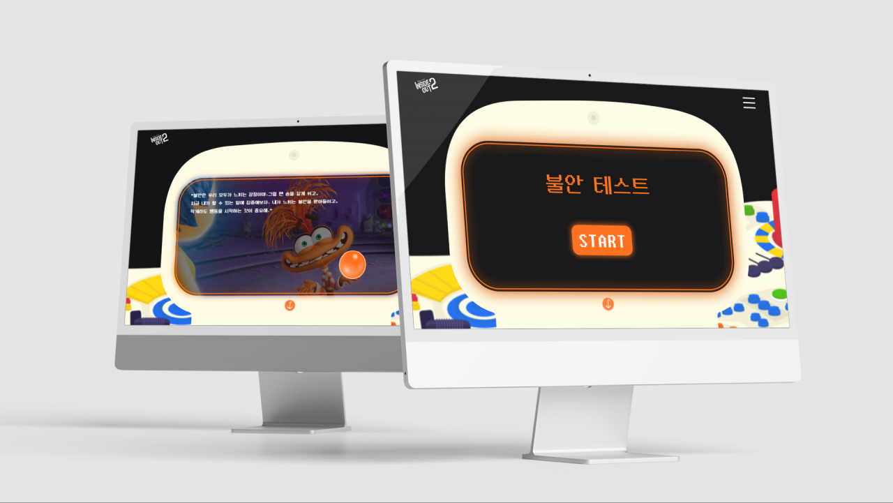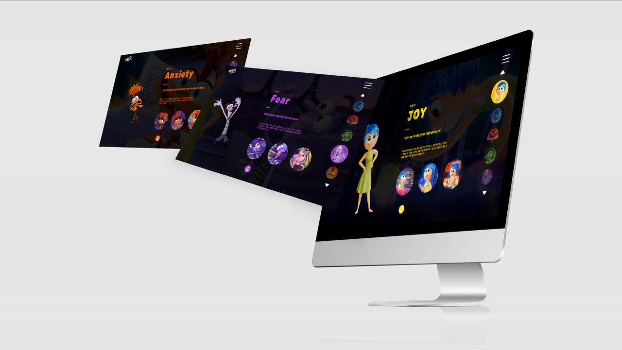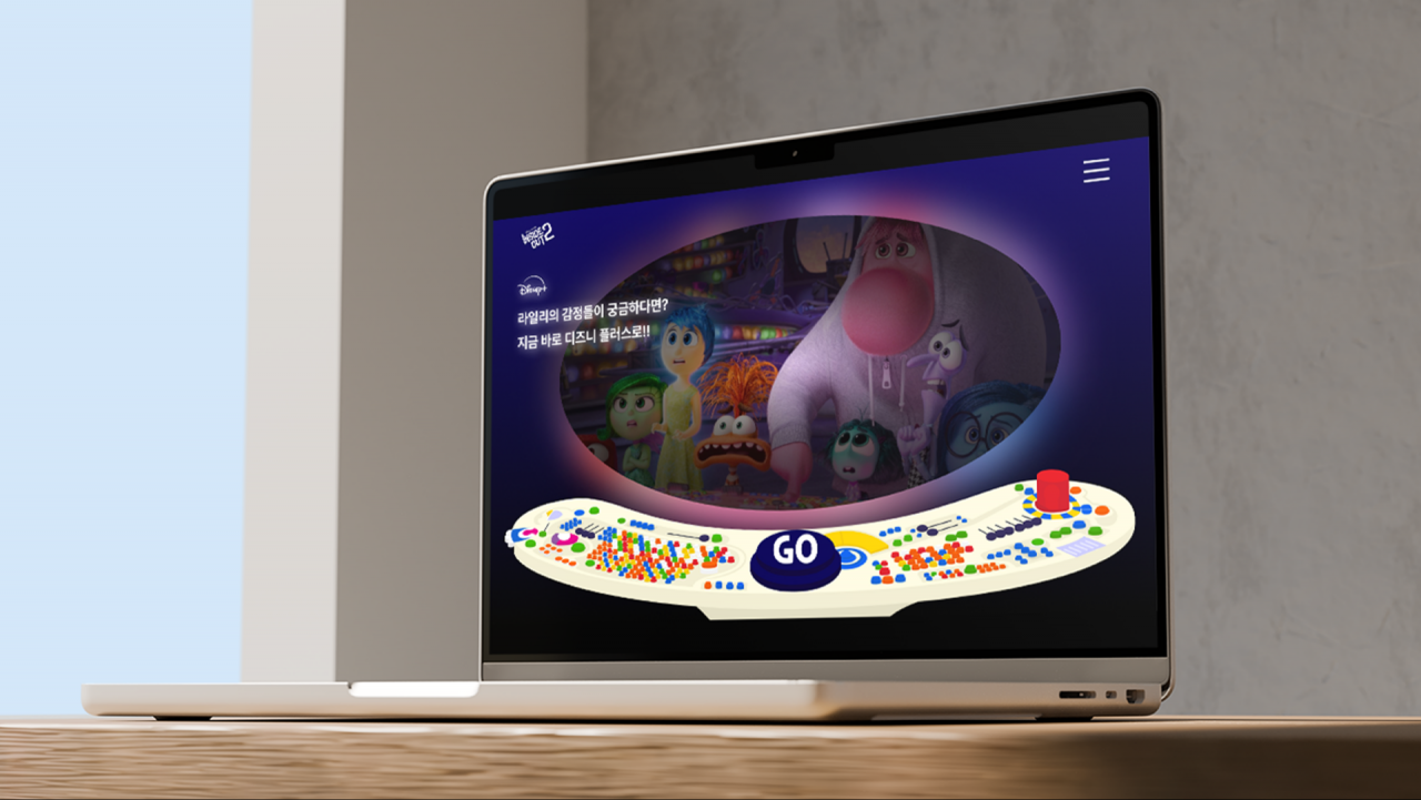 Disney+ 구독 유도를 위한 마이크로 사이트인사이드 아웃2 주인공 라일리의 새로운 감정 변화를 소개하며, 스토리텔링을 통해 사용자가 자연스럽게 영화와 Disney+ 플랫폼에 흥미를 느끼고 구독으로 이어지도록 설계하였다. 라일리의 감정 변화를 다채로운 색감과 인터랙션으로 표현하여 시각적 몰입감을 높였고, 캐릭터 소개와 불안 테스트 등의 참여 요소를 통해 사용자가 직접 경험하도록 유도하며, 최종적으로 디즈니 플러스 구독 페이지로 안내하는 흐름을 구성하였다.