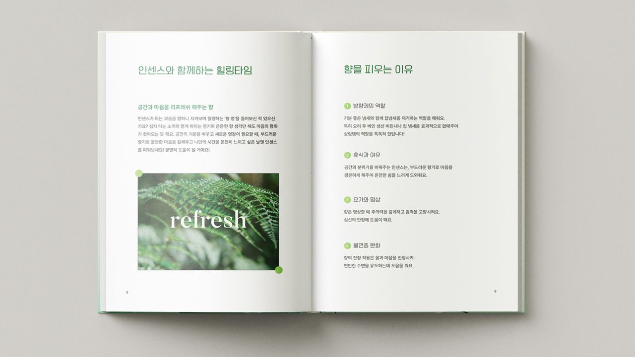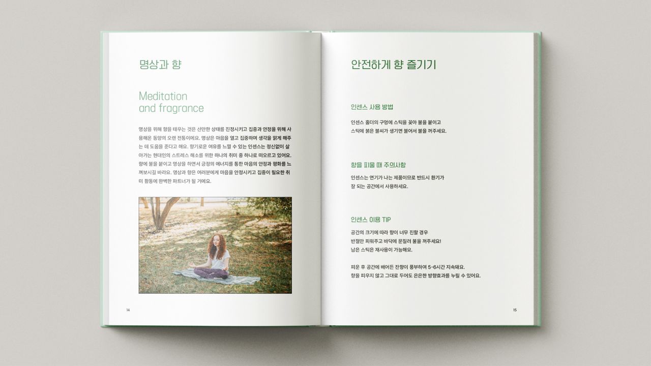 인센스에 대한 호기심은 있지만 종류가 많아 망설였던 입문자들을 위한 인센스 가이드북이다. 안전한 사용법부터 다양한 향의 특징까지, 초보자들이 궁금해하던 인센스의 모든 정보를 담아내고 있다. 특히 입문자들이 사용하기 좋은 향과 인기 있는 베스트셀러 향들을 선정해 향별로 정리하였으며, 각 향마다 일러스트를 더해 설명과 함께 향을 상상할 수 있도록 구성하였다.