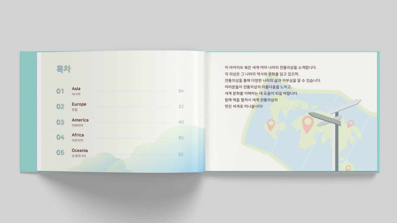 귀여운 캐릭터 디자인으로 독자들에게 친근하게 다가가 다양한 문화에 대한 이해와 존중을 높이고자 하는 목적을 담고 있다.