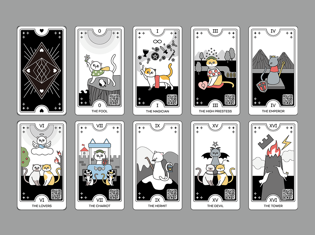 초보자를 위한 웨이트 기반의 타로이며 카드에 QR 코드를 삽입하여 해설지를 가지고 다니지 않아도 된다.