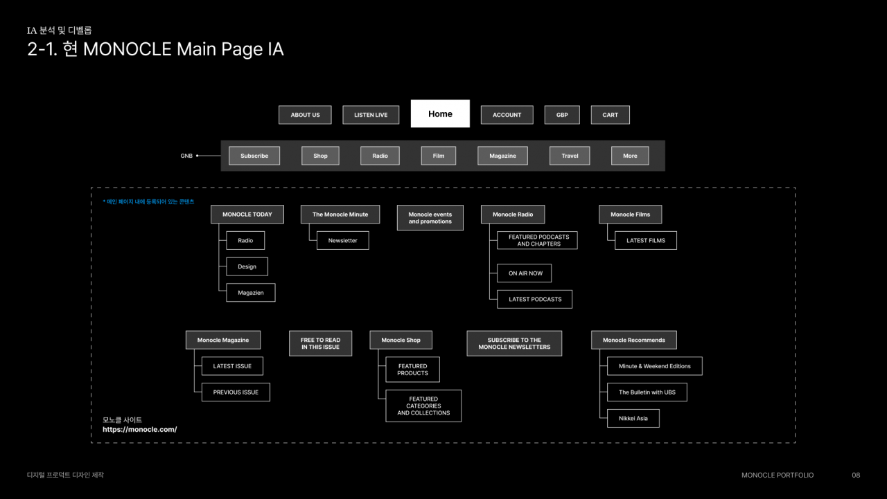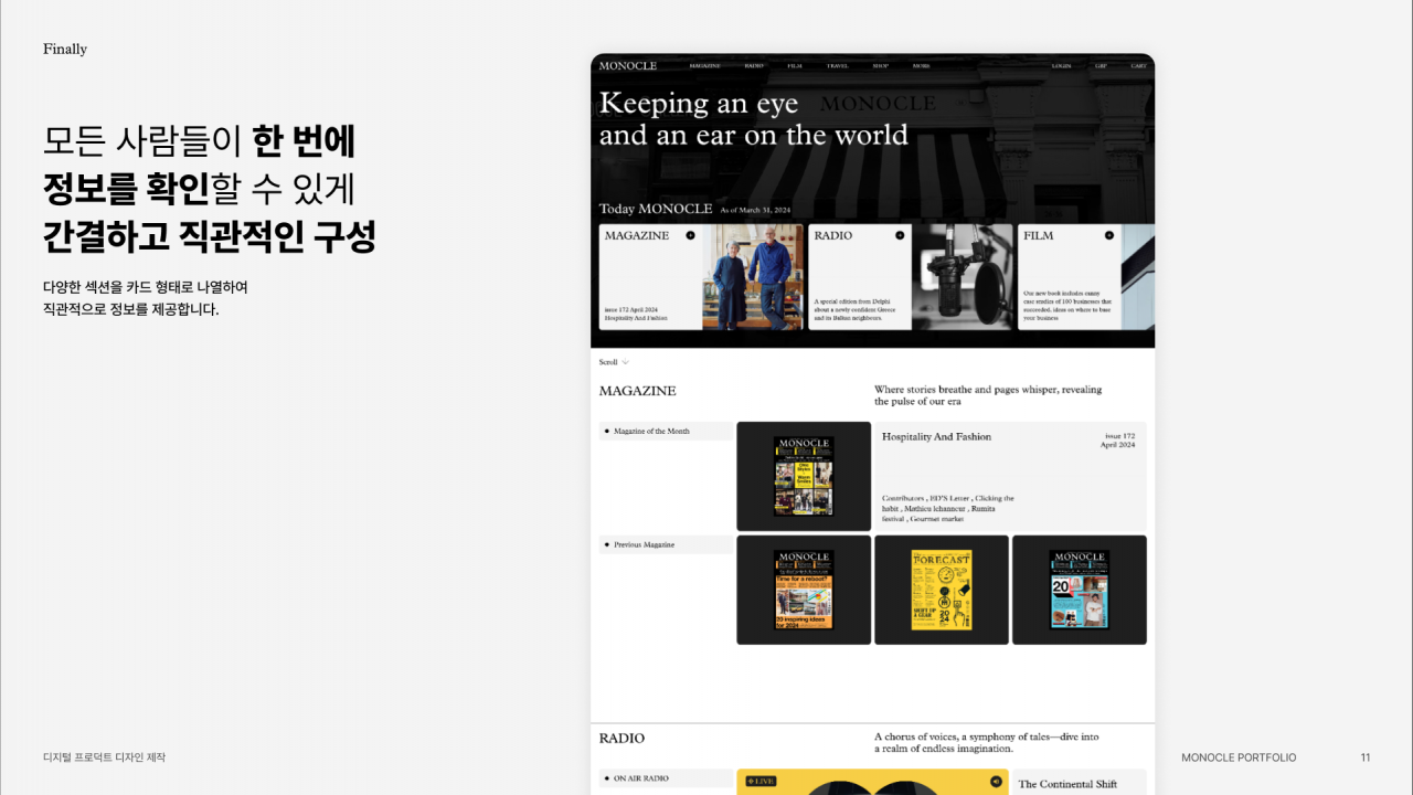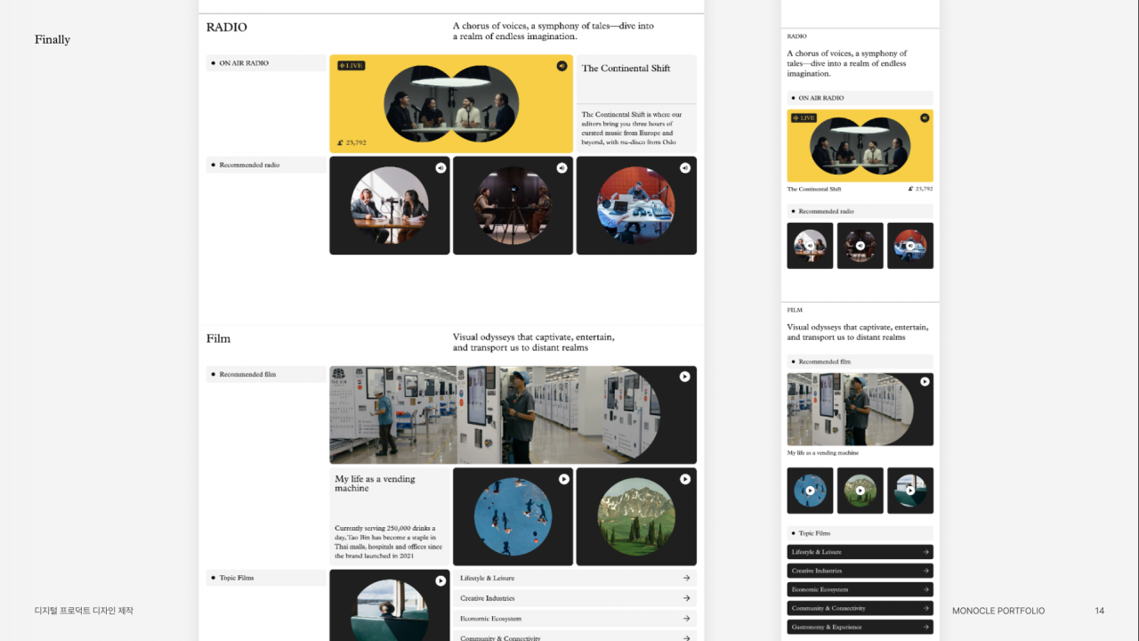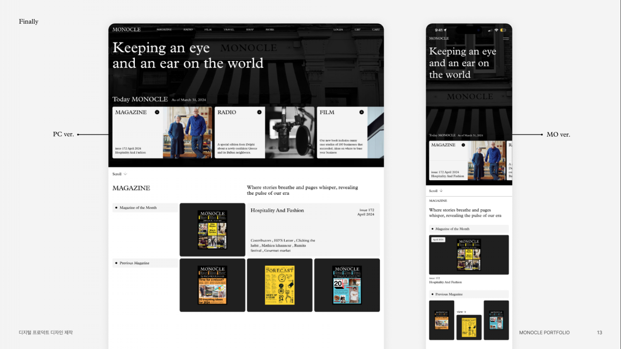 MONOCLE 브랜드 웹사이트 및 모바일 리디자인