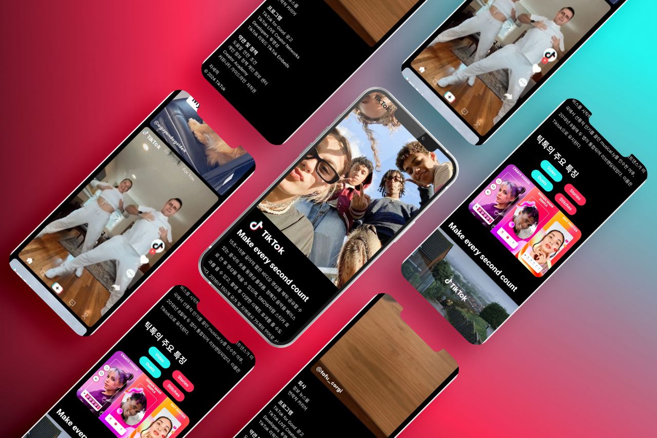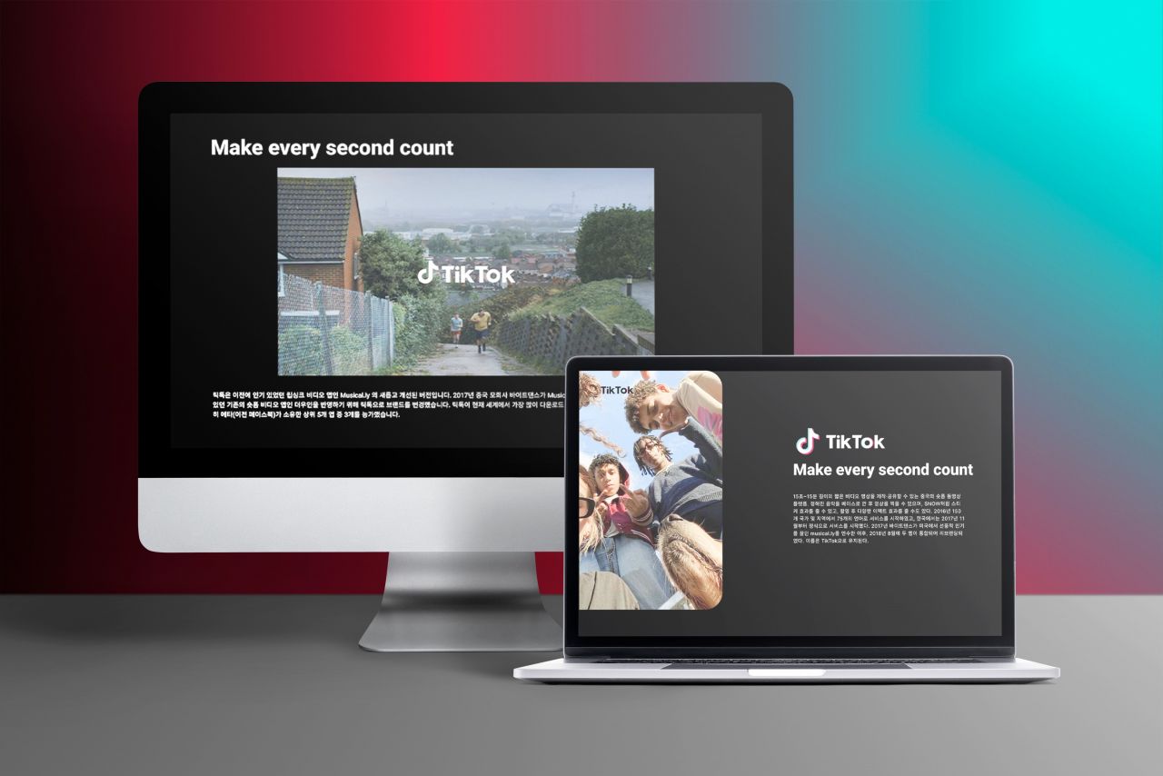 MZ세대의 중심인 20대로써 가장 많이 사용하고 유행의 중심에 있는 틱톡을 소개하는 페이지를 웹과 모바일 버전으로 작업했습니다.