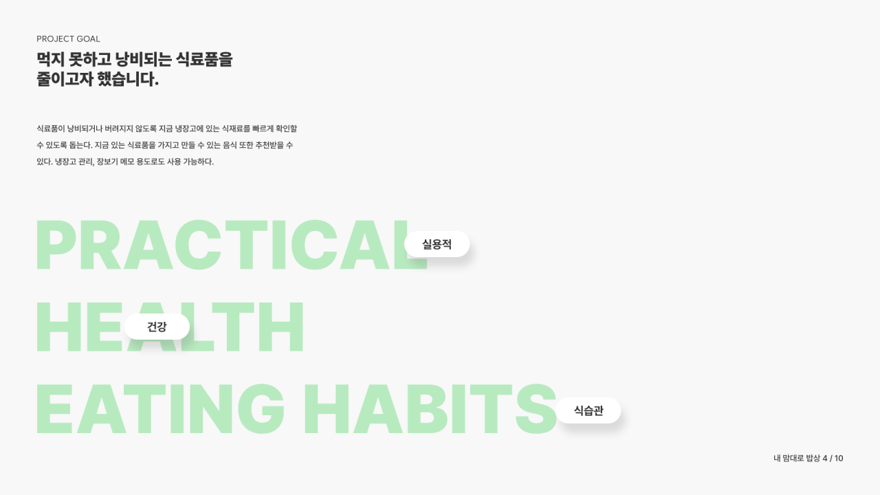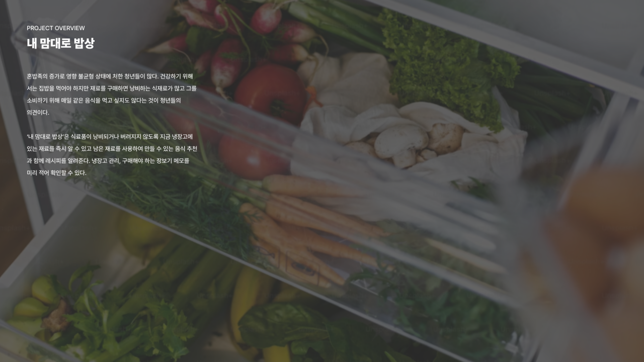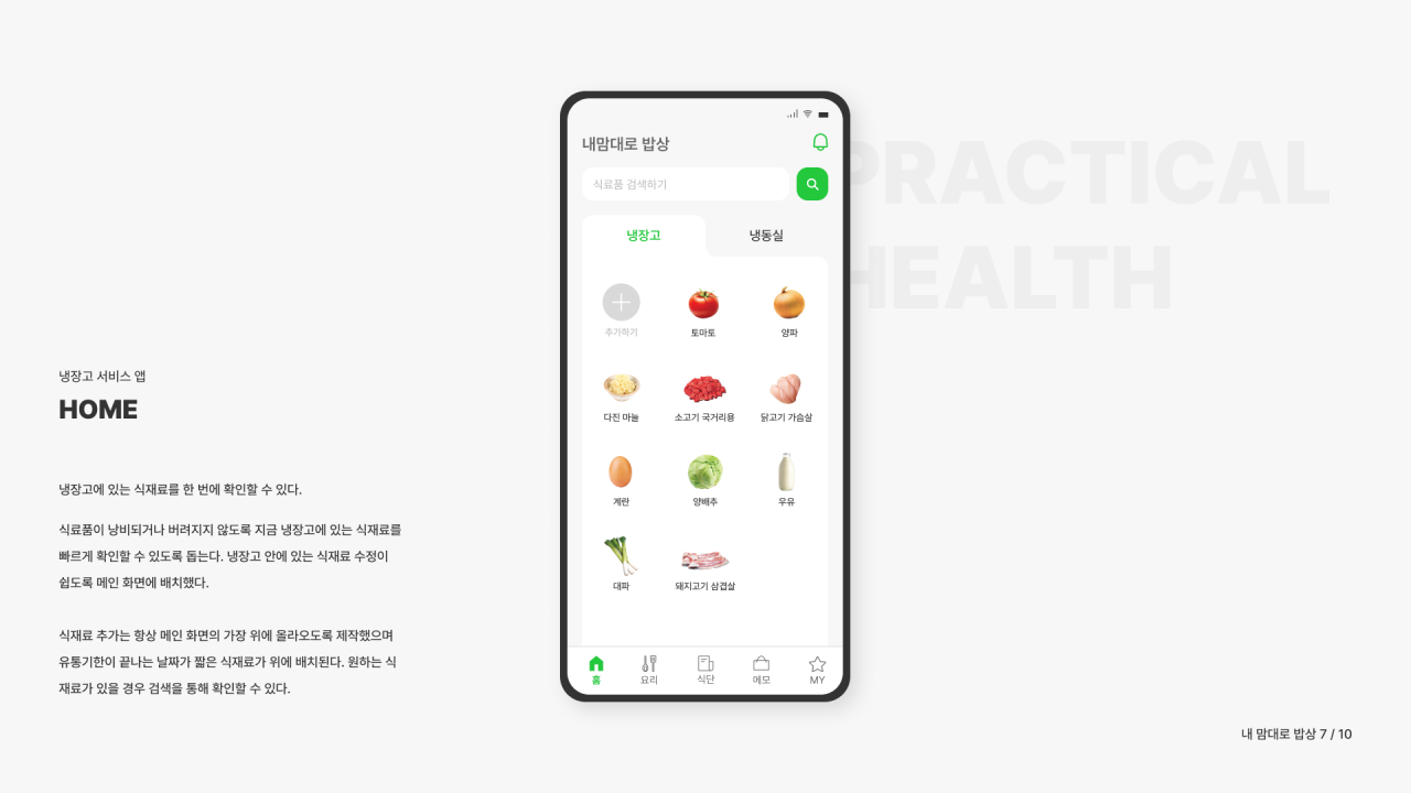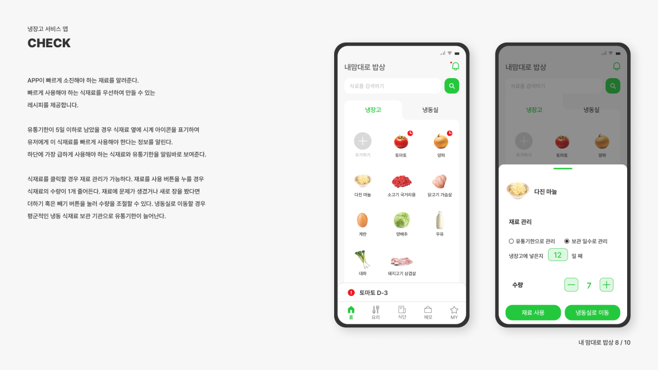 ‘내 맘대로 밥상’은 식료품이 낭비되거나 버려지지 않도록 지금 냉장고에 있는 재료를 즉시 알 수 있고 남은 재료를 사용하여 만들 수 있는 음식 추천과 함께 레시피를 알려준다